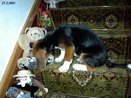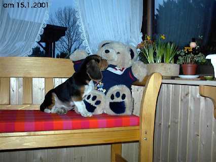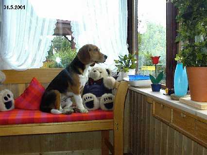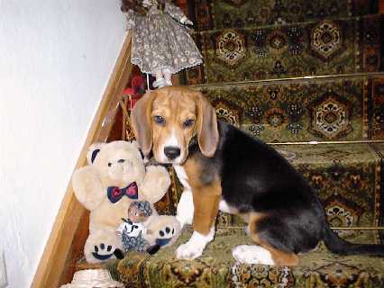 Ich bin am 6. November. 2000 in Jelmstorf in der Lüneburger Heide im Zwinger “From Heath Paradise” geboren. Mein Vater ist: Interim`s Sir Oberon Ogilvie, meine Mutter ist: Red Baron Little Amber. Ich wurde sehr behütet aufgezogen. Schon in der Heide haben mich mein neues Frauchen und Herrchen ein paarmal besucht. Am 4. Januar 2001 war es dann soweit. Ich wurde von meiner neuen Familie abgeholt. In meinem neuen Zuhause gefiel es mir gleich gut, denn wir haben ein schönes Haus und einen grossen Garten. Wir gingen dann viel auf Reisen und Ausstellungen. Am 28. August 2004 wurde ich in Berlin zur Formwertzucht zugelassen und bestand 2005 auch in Berlin die Spurlautprüfung als Tagessieger mit 100 Puinkten. Und am 2. März 2008 wurde ich Dt. VDH-Champion.