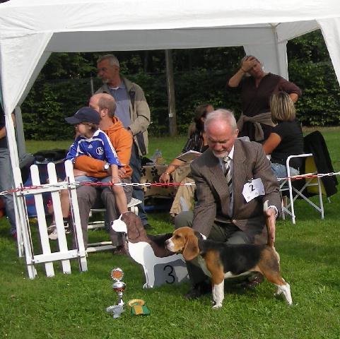 Rostock, am 11. Oktober 2008 Mein erster Richterbericht von A.S. Gothen Eleganter Rüde, sehr schöner Typ, super Kopf, korrekter Fang und Stop, schöne dunkle Augen, vorzügliche Halslänge, prima Ober- und Unterlinie, ausgeprägte Vorbrust, gute Länge des Brustbeins, gute Knochenstärke, schöne Pfoten, freier Bewegungsablauf, gute Kondition.