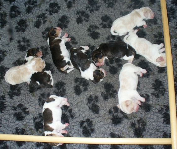 Es ist passiert. Die Welpen sind da. 9 an der Zahl. ein Rüde und 8 Hündinnen. Glückwunsch an Nele.