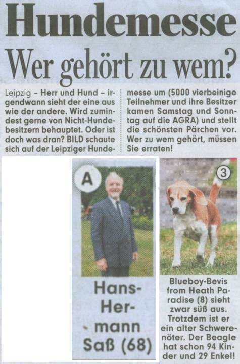 Wir waren wieder mal in Leipzig. Die Ergebnisse unserer Jungs waren wie das Wetter, durchwachsen. Am Sonntag trat nach der Ausstellung ein Team von Bild Leipzig an uns heran und wollte über Bevis und Herrchen berichten. Hier ein Ausschnitt.