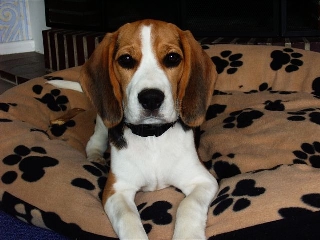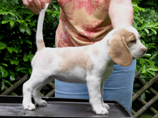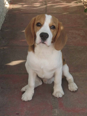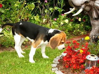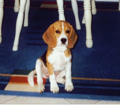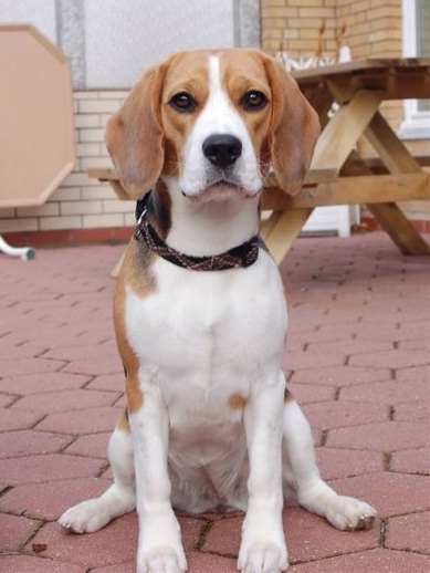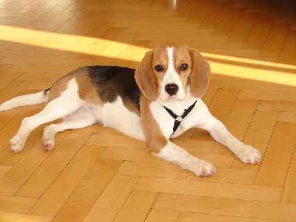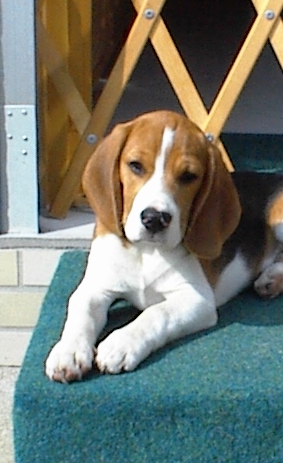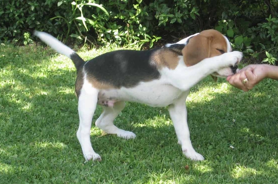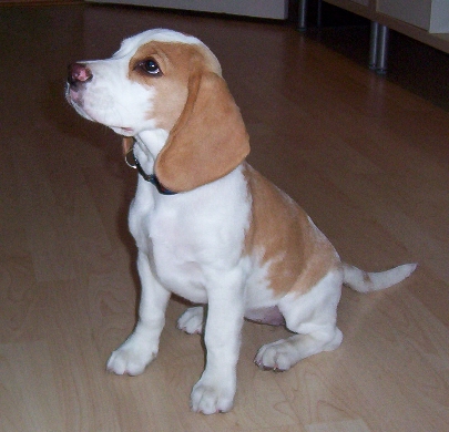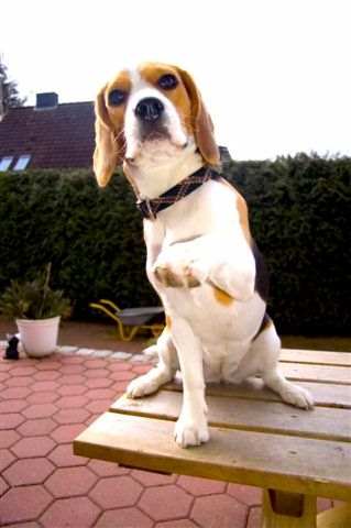 Ich bin Gamble und übe hier Pfötchen geben und wie ihr rechts seht, kann ich auch schon “Sitz” machen.