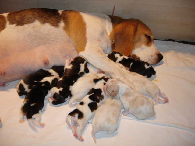 Am 2.1.2008 kamen 10 Welpen (3 Hündinnen und 7 Rüden) zur Welt.eine Hündin bicolourzwei Hündinnen tricolourdrei Rüden tricolourvier Rüden bicolour