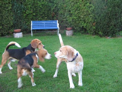 am 22. Juli 2005 besuchte uns in unserem Garten die Beaglehündin Indira, die Tochter von Bevis.