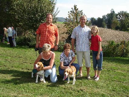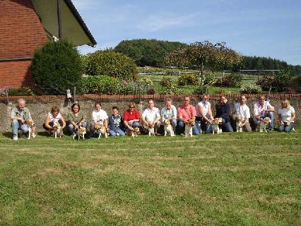 Am 23. 9. 2006 waren wir in Preussisch-Oldendorf bei Familie Schmidt zum Welpentreffen. Hier haben wir viele Kinder von unserem Bevis getroffen. Links 11 Welpen aus dem J-Wurf (ganz links ist John-Boy) und unten 2 aus dem I-Wurf. Es hat viel Spass gemacht.